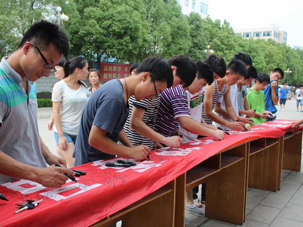 为了加强对师生禁毒防毒品教育,让师生自觉远离毒品,增强自我保护意识,进一步推动校园禁毒工作的深入开展。在“6.26”国际禁毒日即将来临之际,学院举办了“珍爱生命,拒绝毒品”的师生签名活动。百余名师生在横幅上写下自己的名字,庄严承诺坚决履行 “拒绝毒品,珍爱生命”的倡议。