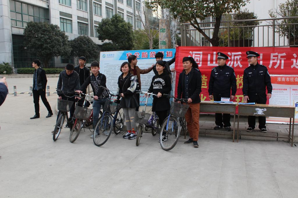淮南市田家庵区公安分局洞山派出所在综治宣传月活动期间,专门来学院与保卫科联合开展赃物返还及法制宣传大会活动,并向大学生发放防范诈骗、防盗等宣传资料300余份,教育学生增强自我保护意识,提高防范能力。